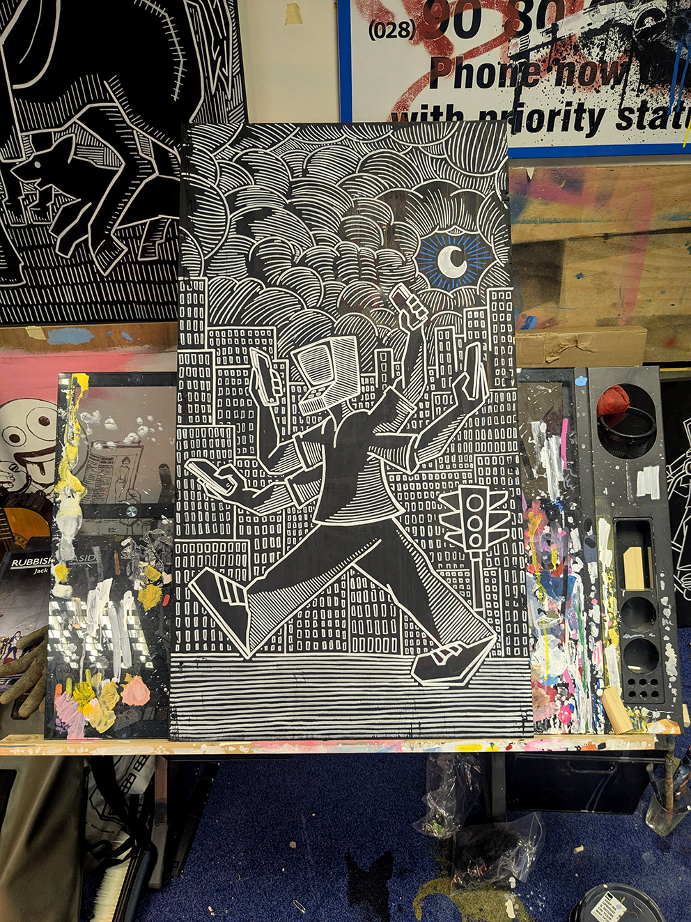 Every now and again I come up with an image that will fit on one of these pieces of ply and I hoke it out from the found plywood library in the corner of my studio and get to work.