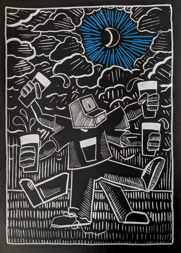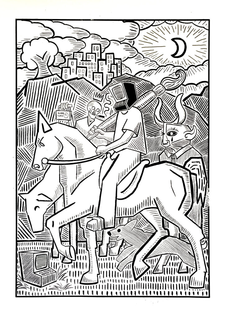Since the roll-out of AI generated images and large language models I have pivoted away from using a computer as a primary tool for creating art. In a culture flooded with oligarch funded climate denial, poisoned wells, crypto scams and deep fakes I have turned to the simplest tool in my toolbox to try and make sense of things, I have returned to the art of drawing.